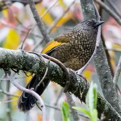 橙翅噪鹛:是噪鹛科、彩翼噪鹛属的中型鸟类,体长22-25厘米。头顶深葡萄灰色或沙褐色。上体灰橄榄褐色,…
