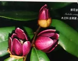 含笑花,拉丁文名:Michelia figo (Lour.)Spreng。常绿灌木,高2-3米,树皮灰褐色,分枝繁密;叶革质,狭椭圆形或倒卵状椭圆形,花期3-5月,果期7-8月。原产中国华南南部各省区,广东鼎湖山有野生,生于阴坡杂木林中。芳香花木,苞润如玉,香幽若兰。