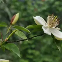 多花含笑是木兰科,含笑属小乔木,高可达20米。芽圆柱形或狭卵形,嫩枝被淡黄色绒毛,老枝无毛,叶革质…