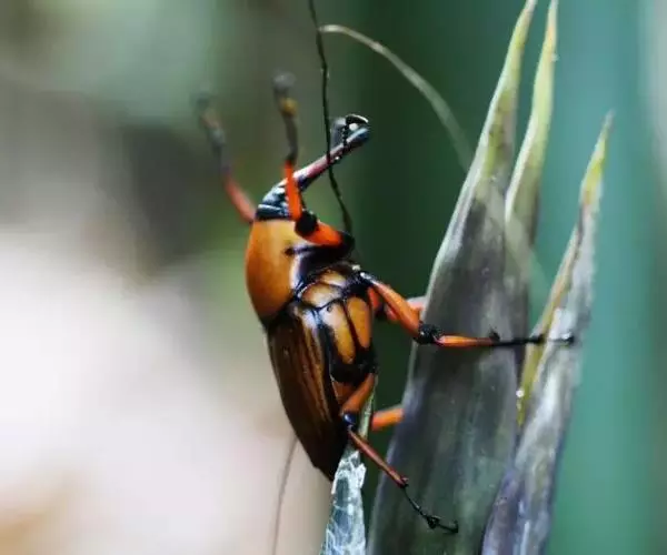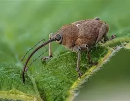 竹象鼻虫,Cyrtotrachelus longimanus,象甲科锥大象甲属的一种昆虫。分布于竹产区,是竹类的主要害虫。以幼虫蛀食竹笋,使笋枯死,还会蛀食1米多高的嫩竹,使其生长不良,节间缩短,拦腰折断,造成顶端小枝丛生以及嫩竹纵裂成沟等畸形现象,结果使嫩竹腐败。