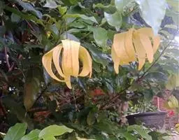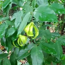 依兰香是依兰属,常绿大乔木,高大20米,花2-5朵腋生,黄绿色,花朵较大,长达8厘米;成熟的果近圆球状或卵状,黑色。依兰香主要用新鲜花瓣来蒸油,称依兰油,是珍贵的香料工业原材料,广泛用于香水、香皂和化妆品等。