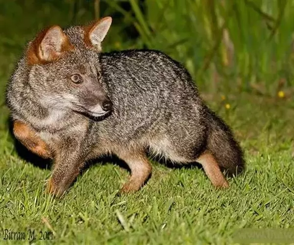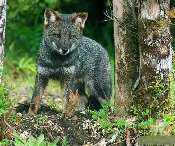 达尔文狐(学名:Lycalopex fulvipes):体长48-60厘米,平均肩高25厘米,尾长17-26厘米,体重1.9-3.9千克。是一种体形非常小的狐狸。毛色暗灰色,腿部和面部有红色。腹部、喉头、胸口和耳内有白色或奶油色毛。耳壳红毛特别鲜艳。