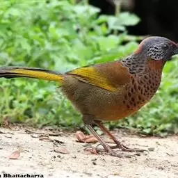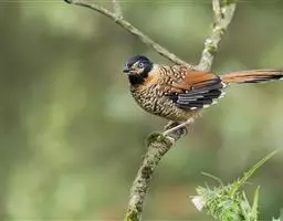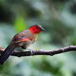 红翅薮鹛是噪眉科、薮鹛属中型鸟类,体长21-24厘米。头顶灰褐色,头侧和颈侧赤红色,上体橄榄褐色,…