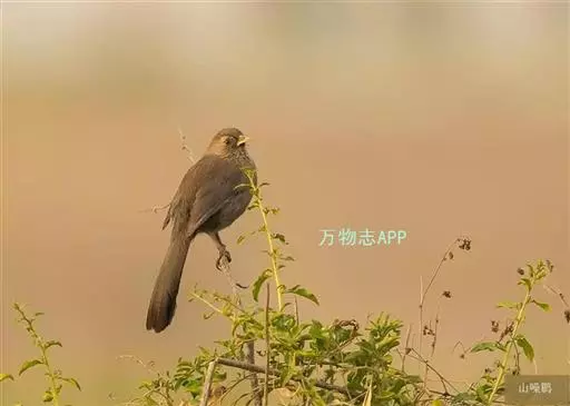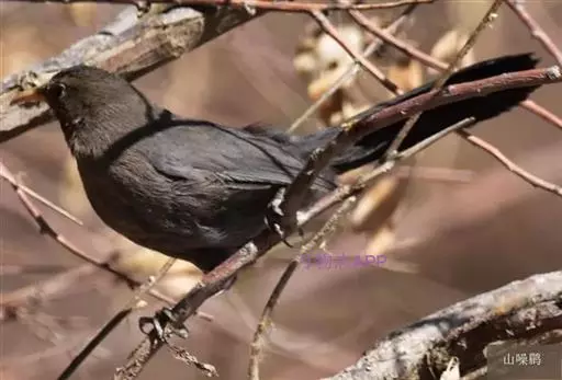 山噪鹛学名Garrulax davidi,雀形目鹟科,中型鸣禽。全身黑褐色,上体灰砂褐色或灰褐色。嘴稍向下曲。栖息于山地灌丛中,经常成对活动。列入国家林业局《国家保护的有的或者有重要经济、科学研究价值的陆生野生动物名录》。兰州地区常见 。