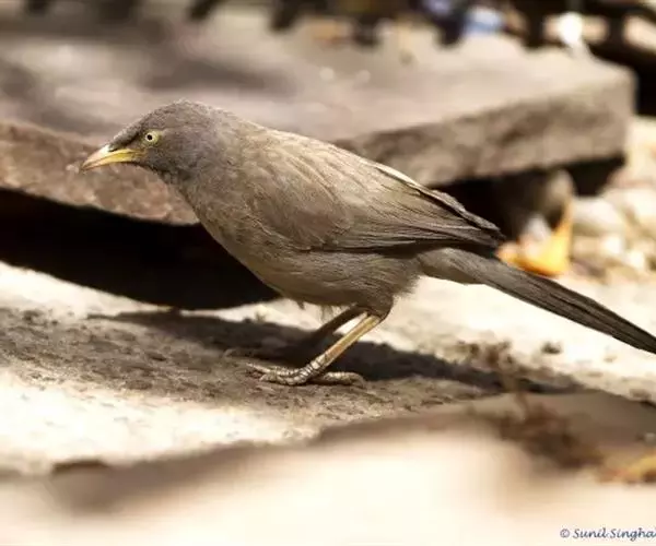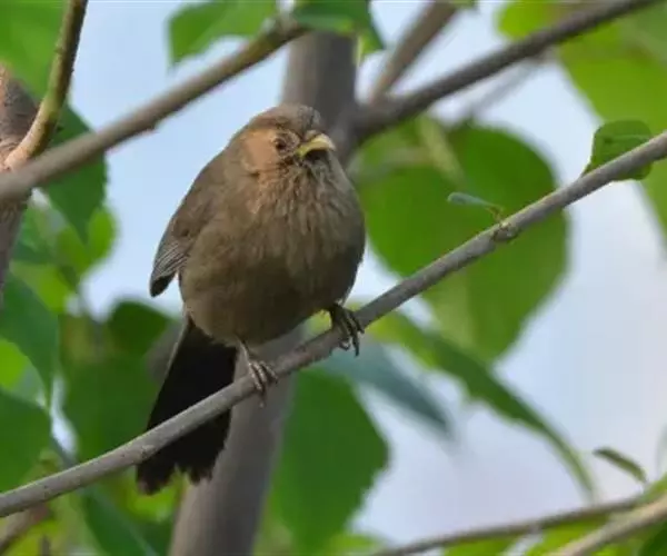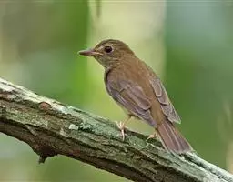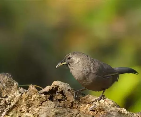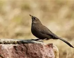 中型鸣禽。全身黑褐色,上体、下体灰砂褐色或暗灰褐色,无显著花纹;嘴稍向下曲;鼻孔完全被须羽掩盖;嘴在鼻孔处的厚度与其宽度几乎相等。体长约250mm,体重约55g。