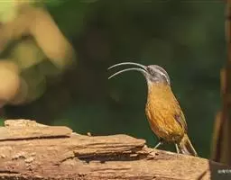 剑嘴鹛:中型鸟类,体长21-22厘米。嘴特别细长而向下弯曲,头顶和头侧烟灰色具长而窄的白色眉纹,…