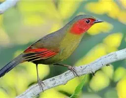 黑顶噪鹛:中型鸟类,体长24-26厘米。前额、脸、颏、喉黑色,头顶黑褐沾棕或深棕橄榄褐色,…