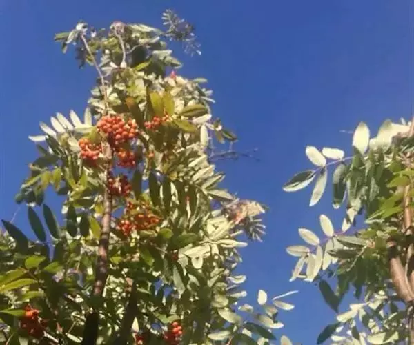 乔木,高达8米;小枝粗壮,圆柱形,灰褐色,具灰白色细小皮孔,嫩枝具绒毛,逐渐脱落,老时无毛;冬芽长大,长圆卵形,先端渐尖,具数枚红褐色鳞片,外面密被灰白色绒毛。奇数羽状复叶,连叶柄在内长12-20厘米,叶柄长2.5-5厘米;小叶片5-7对,间隔1-2.5厘米,基部和顶部的小叶片常稍小,卵状披针形或椭圆披针形,长3-5厘米,宽1.4-1.8厘米,先端急尖或短渐尖,基部偏斜圆形,边缘有细锐锯齿,基部或中部以下近于全缘,上面具稀疏绒毛或近于无毛,下面苍白色,有稀疏或较密集绒毛,间或无毛,侧脉9-16对,在叶边稍弯曲,下面中脉显著突起;叶轴有白色绒毛,老时近于无毛;托叶草质,宿存,宽卵形,有粗锐锯齿。