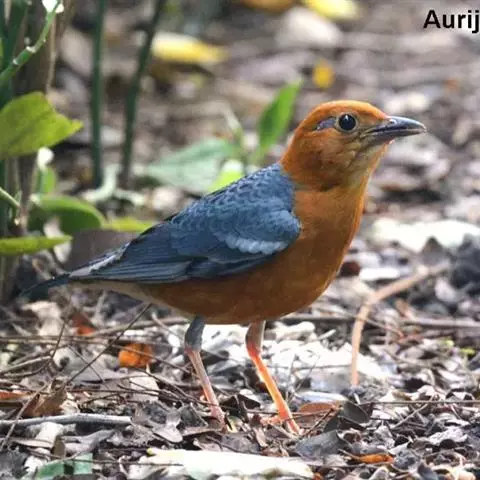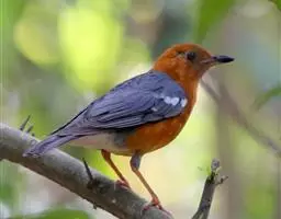 橙头地鸫(学名:Geokichla citrina)是鸫科、地鸫属中型鸟类,体长18-22厘米。整个头、颈和下体橙栗色,其余上体包括两翅和尾蓝灰色或橄榄灰色,翅上多具白色翅斑(仅云南亚种无白色翅斑)。虹膜褐色或棕褐色,嘴黑褐色或黑色,脚橙黄色或肉黄色。特征极明显。野外不难识别。