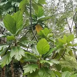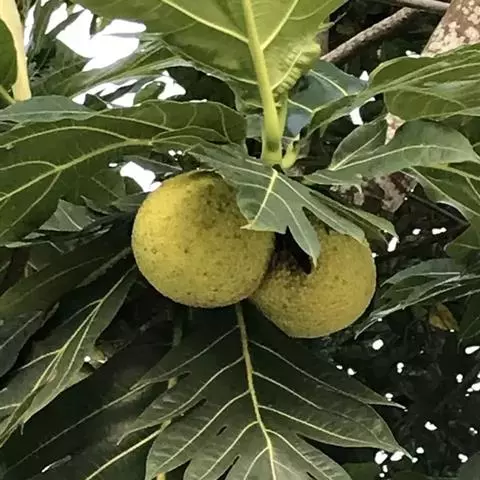 面包树 Fosberg)是桑科波罗蜜属植物。叶大,成熟之叶羽状分裂,表面深绿色,…