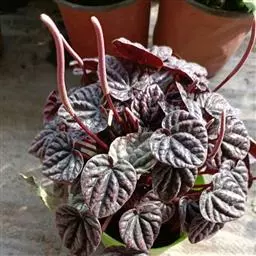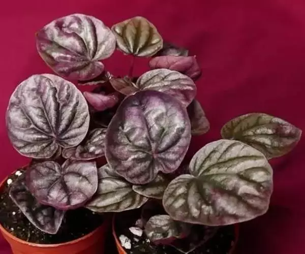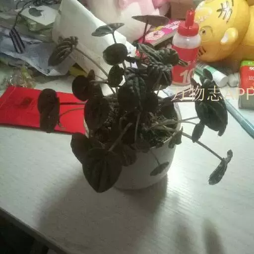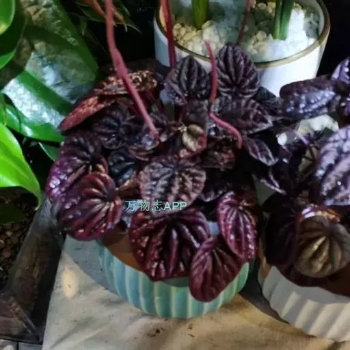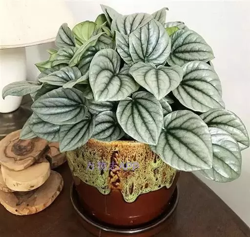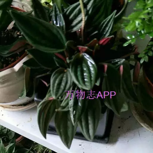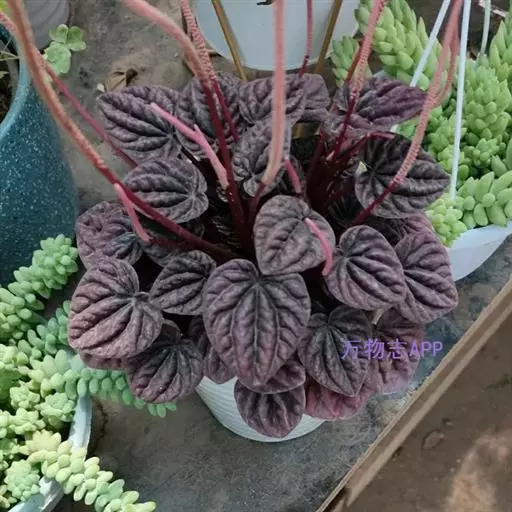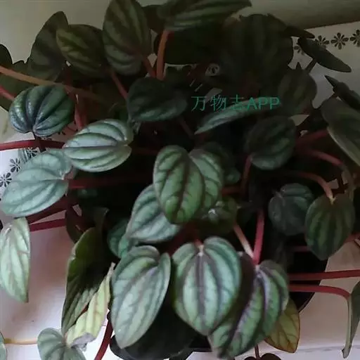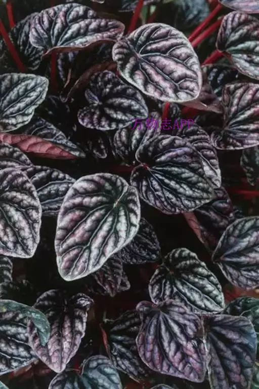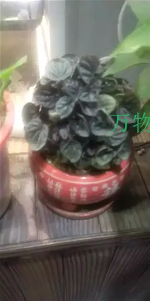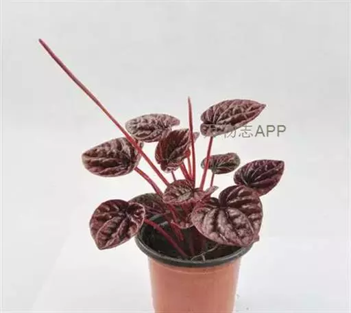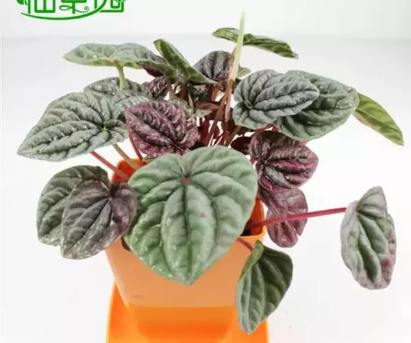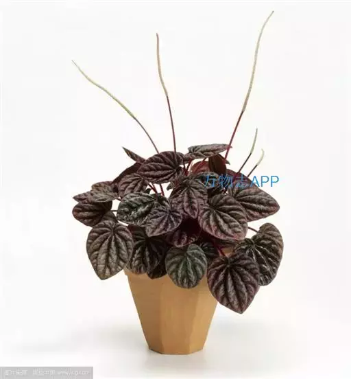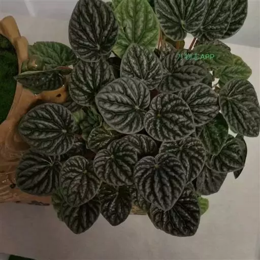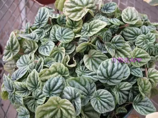皱叶椒草 簇生型植株,茎短,叶圆心形丛生于短茎顶。叶柄长10~15 cm,株高约20 cm。叶面浓绿有光泽,叶背灰绿。主脉及第一侧脉向下凹陷,使叶面折皱不平。