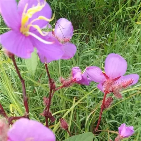 虎颜花是野牡丹科虎颜花属植物。多年生常绿草本,茎极短,被红色粗硬毛,具粗短的根状茎,略木质化;叶基生,…