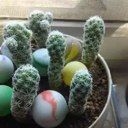 银手球,仙人掌科乳突球属,植株群生,小短圆筒形。原产墨西哥伊达尔戈州。