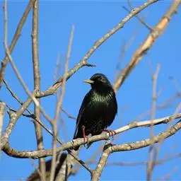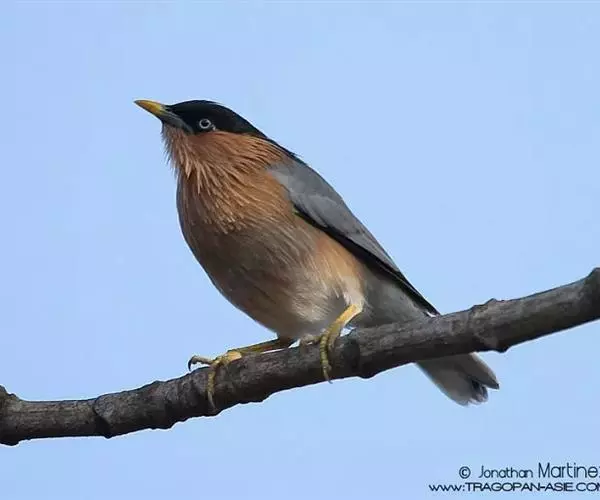 黑冠椋鸟(学名:Sturnus pagodarum):中等体型的椋鸟,体长21厘米。雄鸟前头为黑色并具金属光泽;头顶、颈项和羽冠亦为黑色;翅及翅上覆羽黑色;尾羽褐色,具白色端斑;上体灰色;下体淡黄褐色。雌鸟形态与雄鸟相似,但羽冠较雄鸟为短。虹膜蓝白或乳黄色;嘴峰铅绿色;跗蹠及爪柠檬黄色。头具黑色羽冠,与其他椋鸟易于区别。