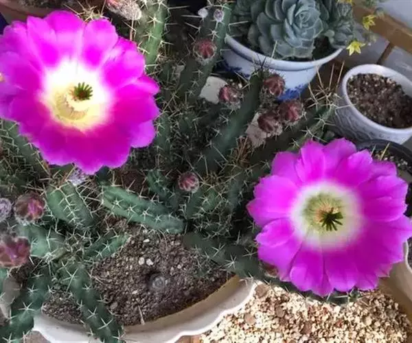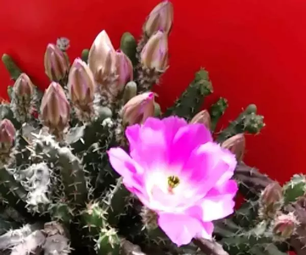 美花角为仙人掌科鹿角柱属植物,春、夏季节开花,美花角花开粉色或玫红色,异花授粉,美花角这个品种还是比较耐暴晒的,生长期干透给水,成株尽量少点水,不然就容易徒长的很长。