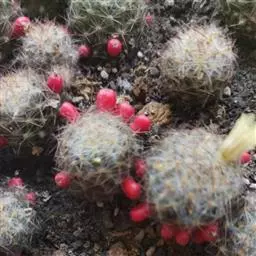 松霞是仙人掌科乳突球属的多年生肉质植物。单个球体小,呈圆筒状,暗绿色,疣状突起小,呈圆形,刺座无毛,…