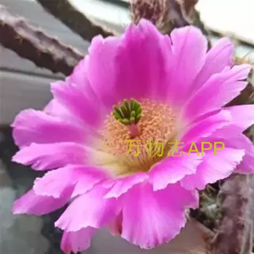 美花角植株有点大,有5-6棱,球体绿色,长柱型,基本五角型,刺生疣凸角尖上,有黄白色刺4-5枚。春、夏季节开花。美花角花开粉色或玫红色,叶片有绢质感,花有雌蕊1枚,雄蕊多枚,黄色,异花授粉。