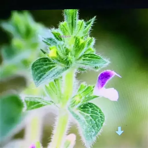 植株呈丛生状,叶对生长椭圆形,色灰绿,叶表有凹凸状织纹,有香味,及具观尝性与食用性,生长强健,耐病虫害,本品种属鼠尾草的稀有品种。
