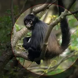 蛛猴属:共有7种。头体长约35-66厘米。头又圆又小,四肢细长,手没有拇指。…