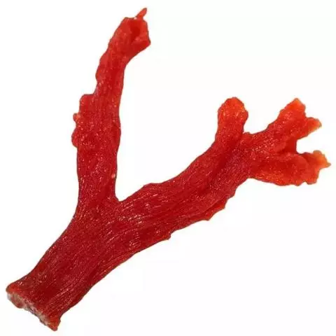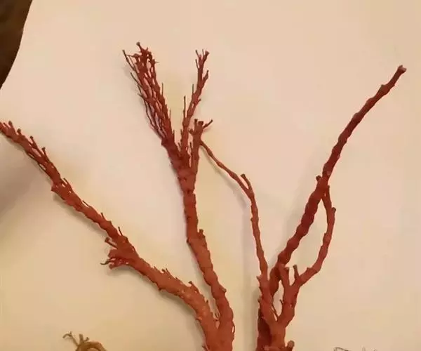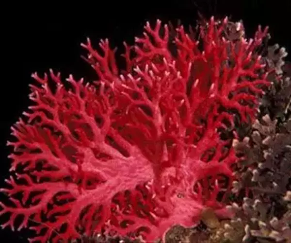 红珊瑚(学名:Corallium rubrum)营群体生活。个体直径一般为0.5mm~2cm,每个个体具8个羽状触手。隔膜8个不成对,隔膜肌向腹生长,隔膜丝单叶状。仅有一个口道沟,位于腹面。骨骼多在体内,或由体内发生后伸向体表。具有钙质中轴骨,呈树状分枝,但不在一个平面上,骨骼呈淡粉红色至深红色。除中轴骨外,均有钙质骨针分布在中胶层中,常与造礁珊瑚生活在一起。骨骼质地坚密、色泽鲜艳,常作宝石或雕刻材料,生长在温度高于20℃的赤道及其附近的热带、亚热带地区。中国古代皇帝的朝珠即由红珊瑚制成;也可入药,有定惊明目之功效。由于大量开采,数量急剧减少,被列为中国一级保护动物。
