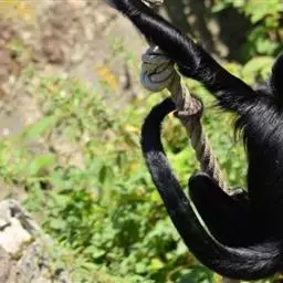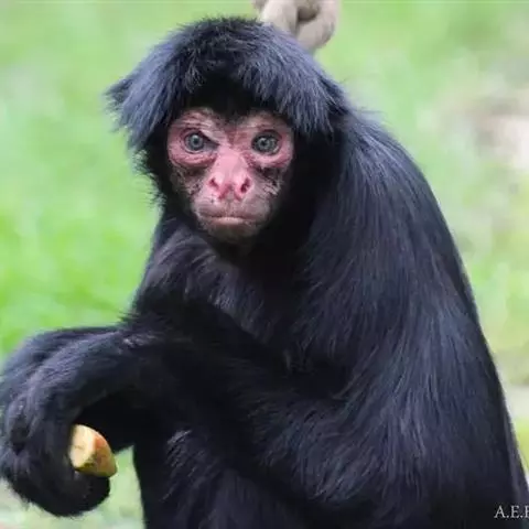 蛛猴属:共有7种。头体长约35-66厘米。头又圆又小,四肢细长,手没有拇指。…
