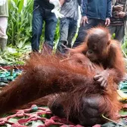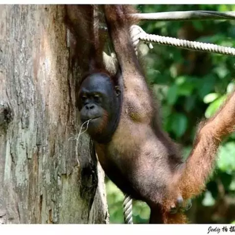 猩猩也叫人猿,灵长目人科 的一属,与猴子最大不同的地方就是没有尾巴,能用手或脚拿东西。马来语和印…