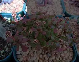 红数珠是景天科青锁龙属植物,叶片对生,叶片长圆型,叶片肥厚。叶片表面有不规则凸起的白色颗粒,…