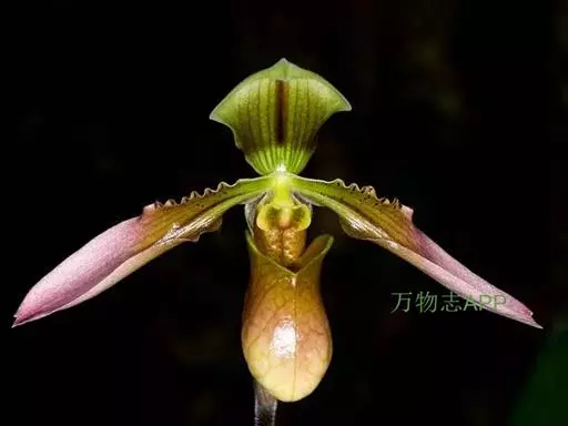 飘带兜兰 Stein)是兰科兜兰属的附生植物,叶基生,叶片宽带形,厚革质,无毛;花葶近直立,绿色,…