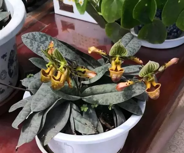 (四)病虫害防治:夏天最容易出现软腐病,拖鞋兰大都栽培于室内,若通风不良,温度上升,新的嫩芽很容易变黑掉落,导致全株枯萎。其防治方法除了喷洒杀菌剂外,放置场所要保持通风良好,一旦*病,停止浇水5~6日,使兰株保持干燥。