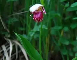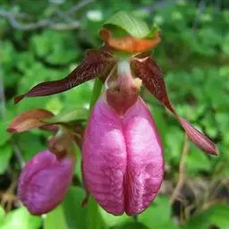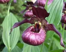 大花杓兰因其形状酷似一个口小肚大的囊袋,又名“大口袋兰”。花体呈紫红色,花朵直径5厘米至6厘米,…