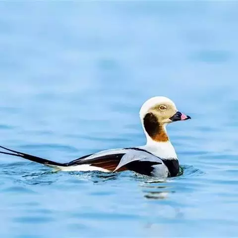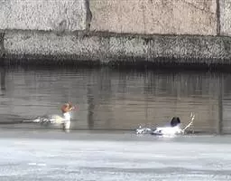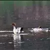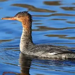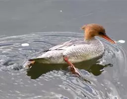 红胸秋沙鸭属中等食鱼鸭类,体长53厘米。嘴细长而带钩,捕食鱼类。丝质冠羽长而尖。雄鸟黑白色,两侧多…