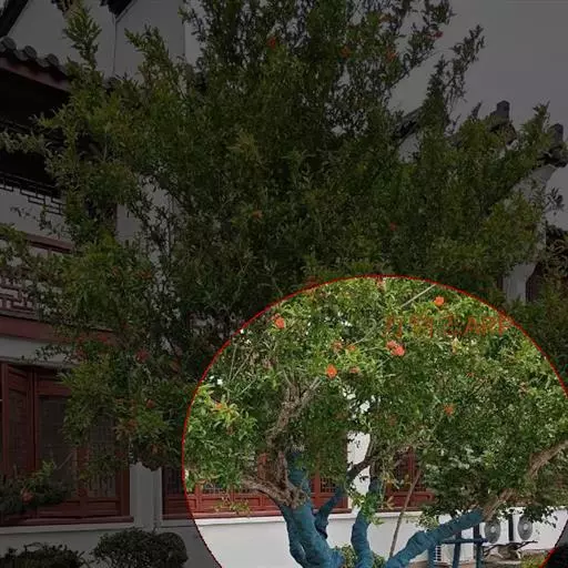 ⒐附石型:石榴树栽在石头缝中,根扎盆土里,远看似山岩上长树,古朴自然生动入画。
