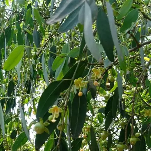 叶对生或簇生,呈长披针形至长圆形,或椭圆状披针形,长2-8cm,宽1-2cm,顶端尖,表面有光泽,背面中脉凸起;有短叶柄。