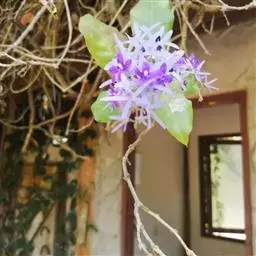 蓝花藤是马鞭草科、蓝花藤属木质藤本,长达5米,叶对生,革质,触之粗糙,椭圆状长圆形或卵状椭圆形,…