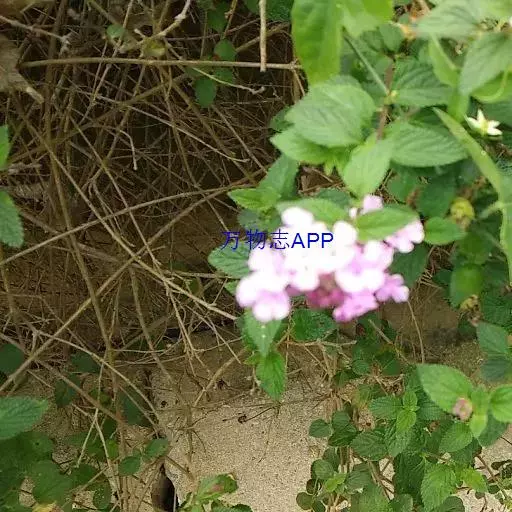 蔓马缨丹是一种灌木;枝下垂,被柔毛,长0.7~1米。叶卵形,长约2.5厘米,基部突然变狭,边缘有粗牙齿。
