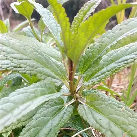 茎直立,四稜形,密被有灰白色丝状绵毛。