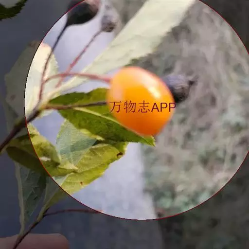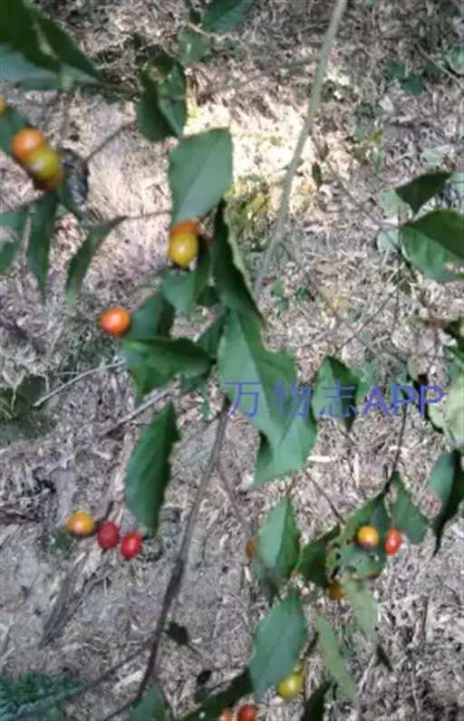 果实椭圆形或卵形,长9-12毫米,直径5-7毫米,桔红色或紫色,无毛,有直立宿存萼片,内含2-3卵形种子;果梗长1-2.5厘米,密布疣点。