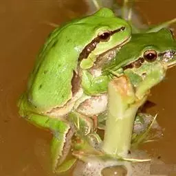 树蛙是树蛙科两栖动物的统称。树蛙体中等或大,一般雄蛙吻端斜尖,雌蛙吻端高钝;舌后端缺刻深,梨骨齿发达,…