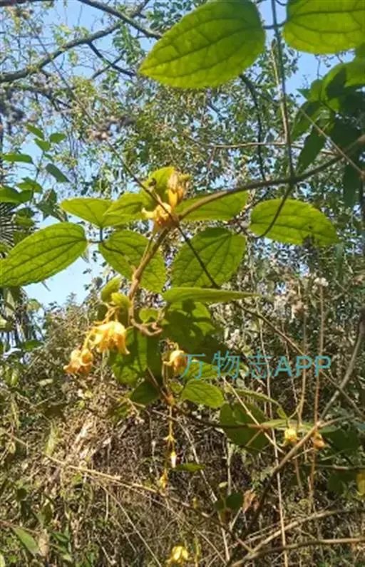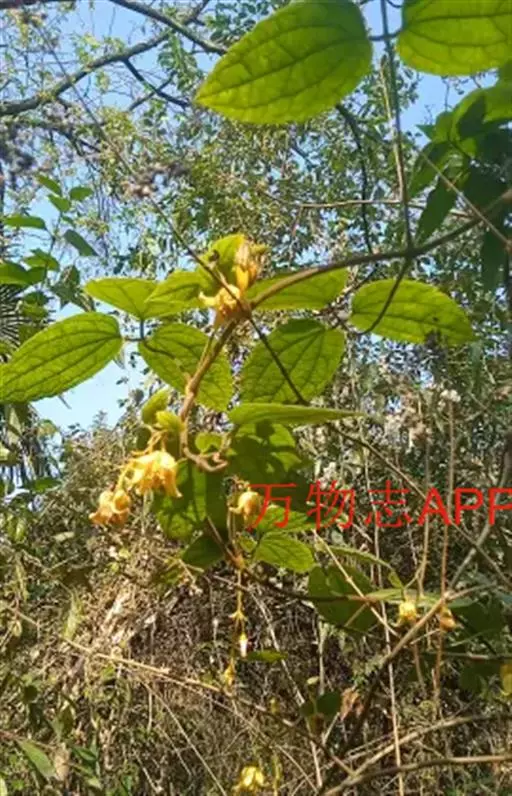 多年生 木质藤本。茎圆柱形,有纵沟纹,密被开展的金黄色长柔毛。