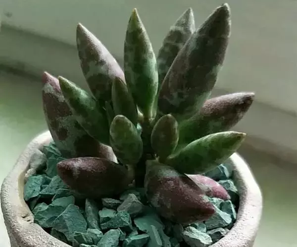 千代田之松,景天科、厚叶草属小型多肉植物、也称多浆植物,原产地是墨西哥伊达尔戈州。千代田之松叶似纺锤非常可爱。目前该属种类很少,作为一个属的代表种之一应收集栽培。叶片上的纹路是自带的,是少有的叶片带纹路的多肉植物。