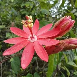 红花西番莲 是西番莲科、西番莲属多年生草质藤本,茎圆形,具卷须,长6-8米。叶互生,长圆形至长卵形,…