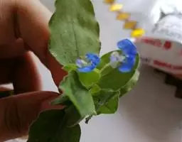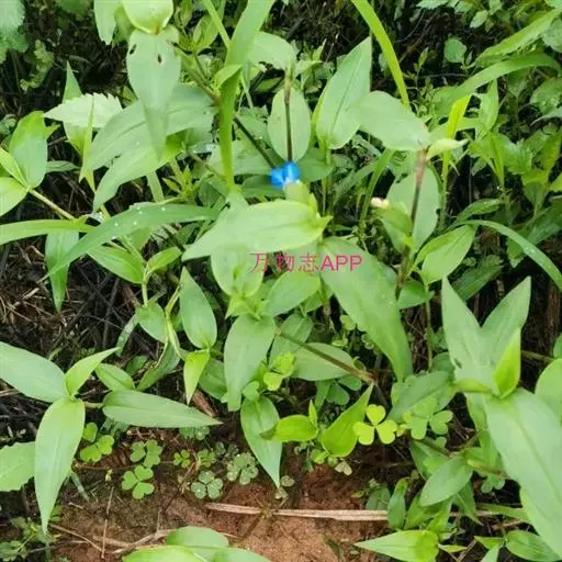 鸭跖草 别名:碧竹子、兰花草、竹叶菜、鸡冠菜、鸭抓菜、淡竹叶。长于各地。生于路边,水沟边及荒野阴湿处,易于采集。味平淡。嫩茎叶肉质多汁,可作蔬菜,5~6月间采集炒食或作汤,或拌面蒸食。可治各种感染发烧的病(单味水煎服),和各种出血,痢疾,毒蛇咬伤等。草本,茎斜向上,基部伏于地面,有时节上生根。叶片披针形,有绿色脉。花呈深蓝色。花苞小,有总梗。