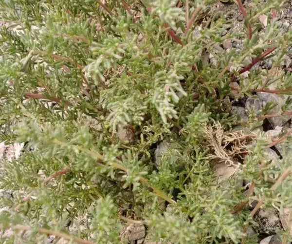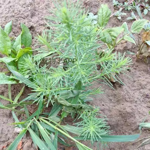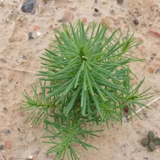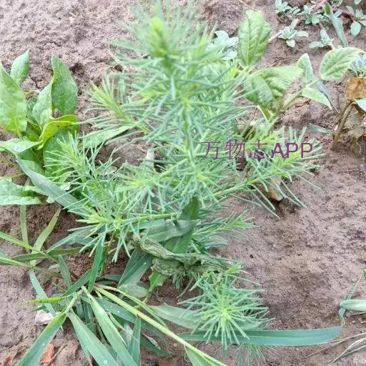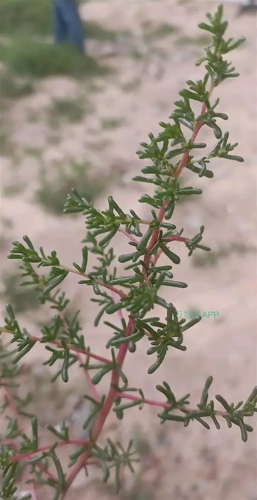 一年生草本,高可达1米。茎直立,粗壮,圆柱状,浅绿色,有条棱,上部多分枝;枝细长,上升或斜伸。叶丝状条形,半圆柱状,通常长1.5-5厘米,宽约1.5毫米,灰绿色,光滑无毛,稍向上弯曲,先端微尖,基部稍收缩。