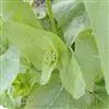 基生叶大,倒卵状长圆形至倒卵形,长30~60厘米,顶端圆钝,边缘皱缩,波状,有时具不显明牙齿,中脉白色,很宽;有多数粗壮的侧脉,叶柄白色,扁平,长5-9厘米,宽2-8厘米,边缘有具缺刻的宽薄翅;上部茎生叶长圆状卵形、长圆披针形至长披针形,长2.5-7厘米,顶端圆钝至短急尖,全缘或有裂齿,有柄或抱茎,耳状,有粉霜。