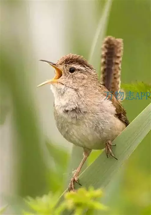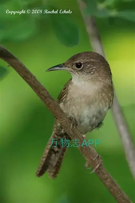 莺鹪鹩(图2) 莺鹪鹩是一种小型鸣禽,身长11-13厘米。这可能是唯一容易与冬鹪鹩混淆的品种,区别是它的体积更小,尾巴更短,它较暗的下体没有明显的斑纹。