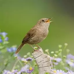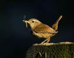 莺鹪鹩(图5) 莺鹪鹩(图6) 莺鹪鹩一般一夫一妻制,雄鸟要承担主要的建巢责任,巢建在树洞、岩洞、建筑物、岸边洞隙里。巢以细枝、草叶、苔藓、羽毛等物交织而成,呈深碗状或圆屋顶状。繁殖季节是4月下旬至9月,每年繁殖两次。雌鸟每窝下4至6枚卵,约12天孵化。幼鸟孵化后由父母再喂养15至17天才离巢。