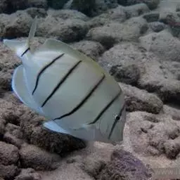 横带刺尾鱼,刺尾鱼科刺尾鱼属的一种鱼类。俗名条纹刺尾鱼。鱼吻及下颌周围有淡色环。体被细小栉鳞。体色…