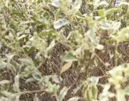 (原种二)花叶丁香小灌木,高1-2米,或达3米。枝细弱,开展,直立或稍弓曲,灰棕色,无毛,具皮孔,小枝无毛。叶片披针形或卵状披针形,长1.5-6厘米,宽0.8-2厘米,先端渐尖或锐尖,基部楔形,全缘,稀具1-2小裂片,无毛;叶柄长0.5-1.3厘米,无毛。花序由侧芽抽生,长3-10厘米,通常多对排列在枝条上部呈顶生圆锥花序状;花序轴无毛,具皮孔;花梗长约1.5-3毫米,无毛;花芳香;花萼无毛,长约2毫米,具浅而锐尖的齿,或萼齿呈三角形;花冠淡紫色,花冠管细弱,近圆柱形,长0.6-1厘米,花冠裂片呈直角开展,宽卵形、卵形或椭圆形,长4-7毫米,兜状,先端尖或钝;花药小,不孕,淡黄绿色,着生于花冠管喉部之下。果未见。花期5月。
