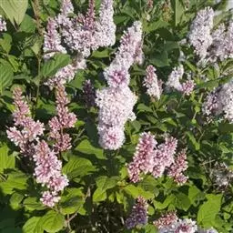 什锦丁香(学名:Syringa × chinensis Willd.):灌木,树皮灰色。枝细长,开展,常弓曲,小枝黄棕色,有时呈四棱形,无毛,具皮孔。叶片卵状披针形至卵形,长2-6厘米,宽0.8-3厘米,先端锐尖至渐尖,基部楔形至近圆形,上面深绿色,下面粉绿色,两面无毛;叶柄长0.5-1.5厘米,无毛。花药黄色,着生于花冠管喉部或距喉部约1毫米处。花期5月。