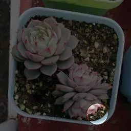 (N.cruenta),莲座状叶片,宽8厘米,淡褐绿色,前端部具血红色。花蓝色,具淡蓝色苞片。